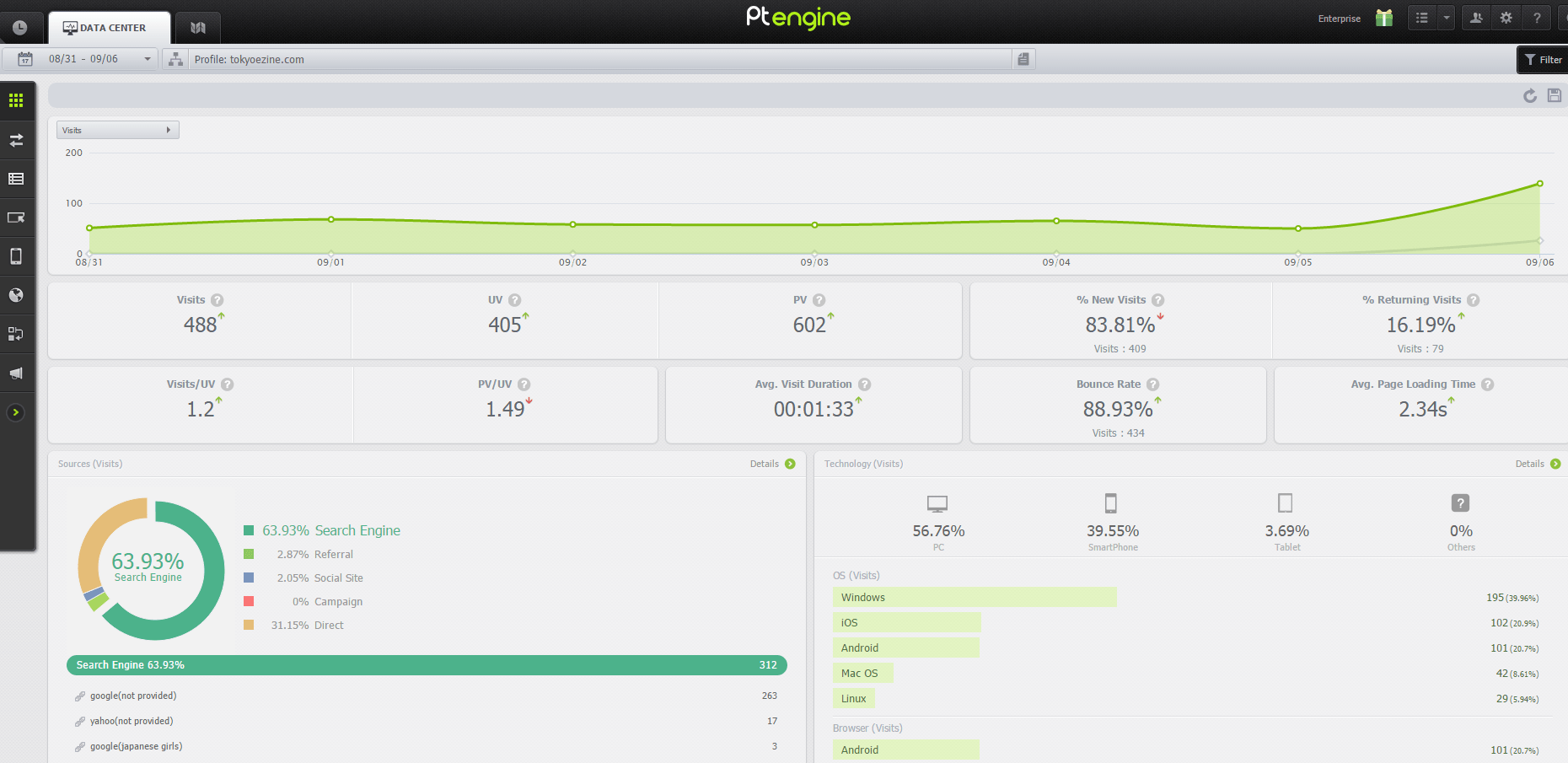 Ptengine did a great work in creating a very simple to use dashboard, with several features, accessible in a matter of seconds.