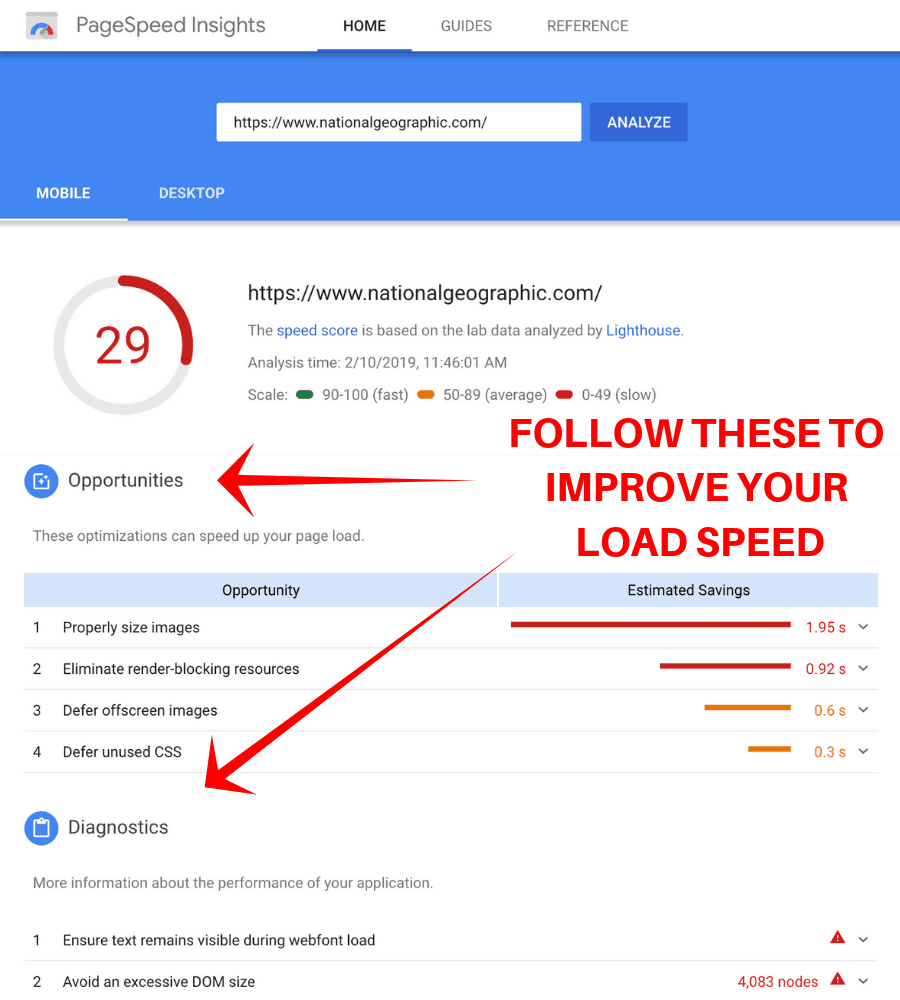 Run your homepage and any other major pages or posts through the program, and take action based on the Opportunities and Diagnostics reports.