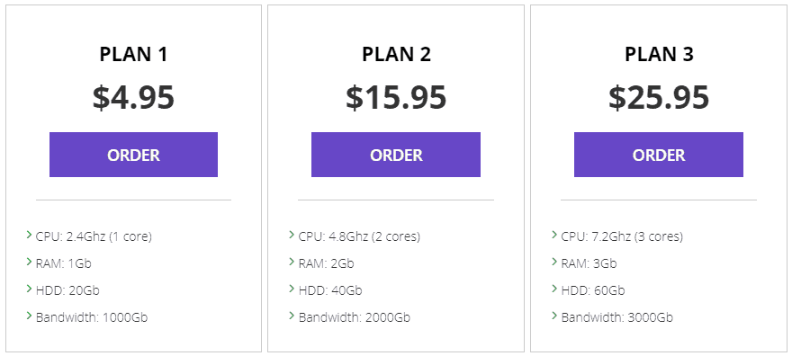 For example, with $4,95 you can get the Plan 1, which includes: