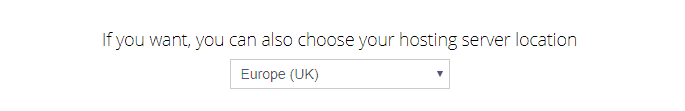 The web hosting setup is easy as well. Simply pick the domain you have chosen as the main account, and then the server location (Europe or North America):