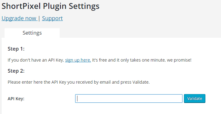 Now, you need to add the API license. Just complete the free and quick registration to ShortPixel site and you’ll get one.