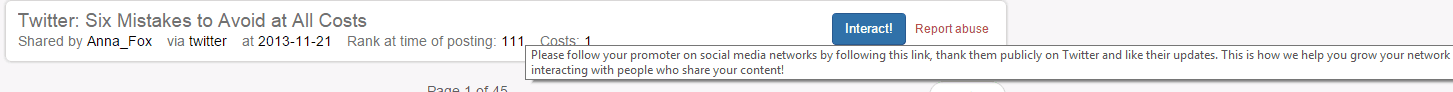 An interesting feature of ViralContentBee is the “interactions”.