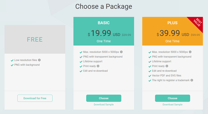 It’s okay for using online, but if you need higher resolution for printing needs, you need to pay for a small amount of one-time fee to upgrade your free logo to premium. You can see the details below.