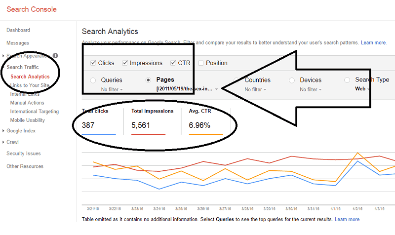 Now you can view the average position and average CTR of this specific blogpost.