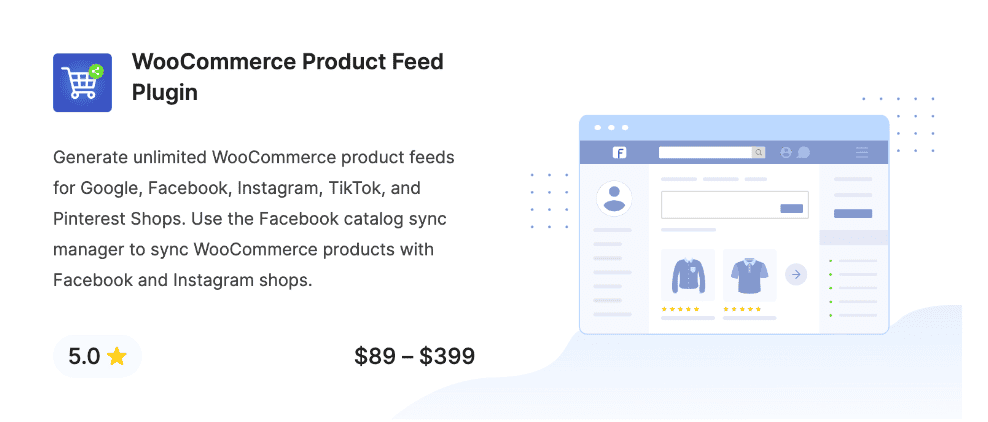 The WooCommerce Product Feed has both free and pro versions. The pricing for the pro version starts at $89 for a single site license.
