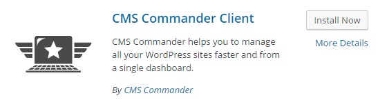 Under your WordPress dashboard, go to “plugins”, then “add new” and search for “CMS Commander Client”: