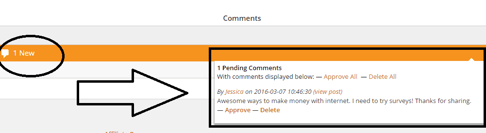 You can simply manage comments by hovering the mouse on this feature, and approve or delete each of them (also in bulk).