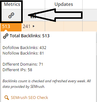 The next feature is the “metrics”. It offers a picture of how your blog’s off-page SEO is going: