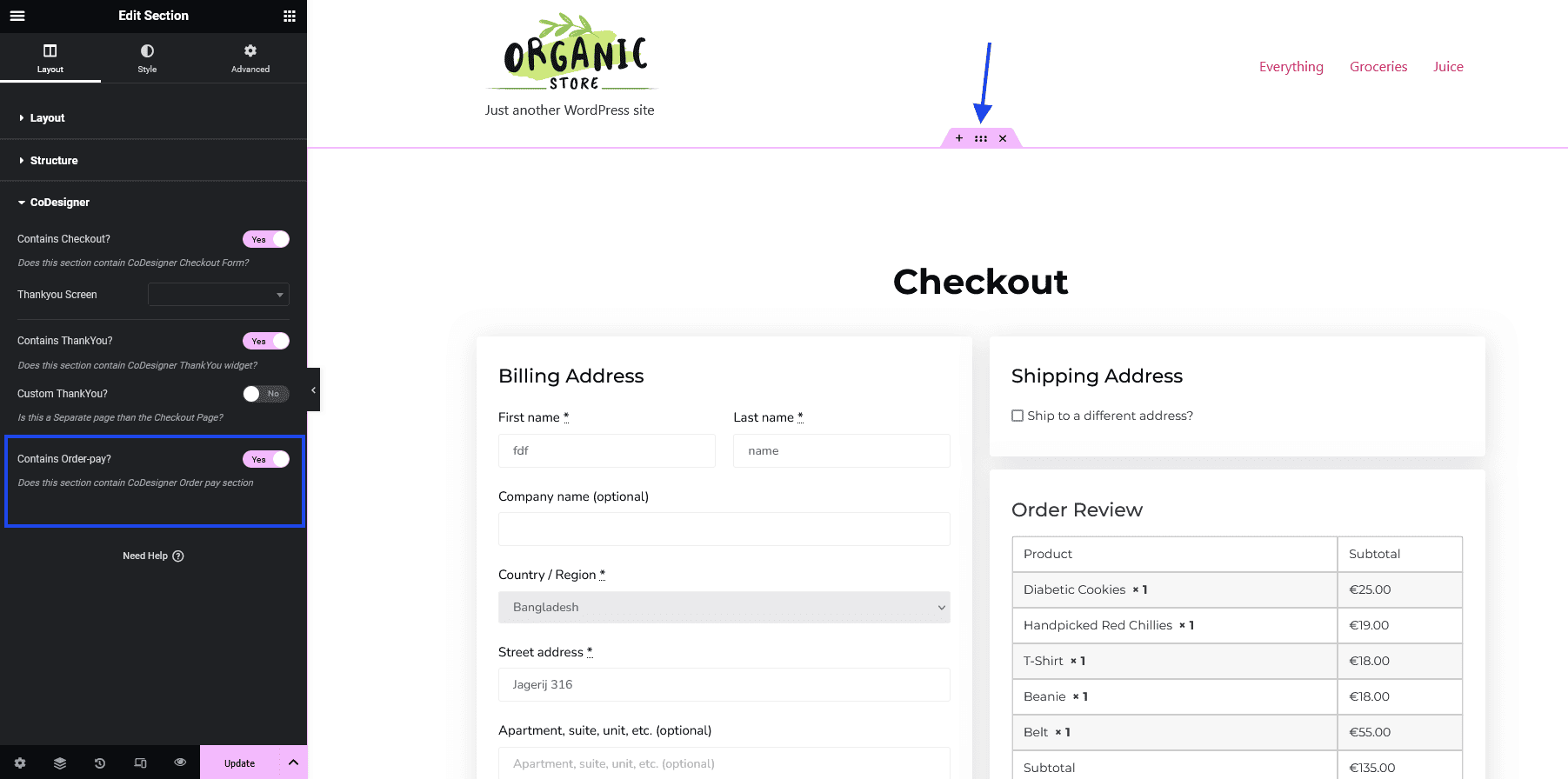After all the customization you have to publish your checkout page. If you haven’t set this as your site checkout page then go to WooCommerce – Settings – Advanced and set this checkout page as your default.
