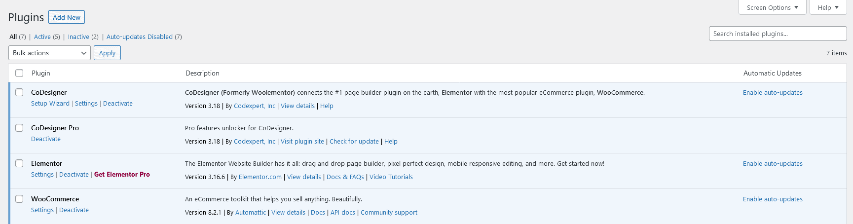 - First, make sure you have installed the WooCommerce, Elementor, CoDesigner, and CoDesigner Pro plugins on your WordPress website.