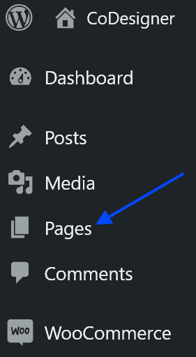 - After configuring all the settings of WooCommerce you have to go to your dashboard and click on the Page tab.